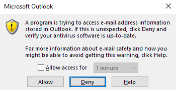 Based on the outlook configuration, this may pop up on the victim side. This can be suppressed by modifying certain registry values. I will leave this to your creativity.